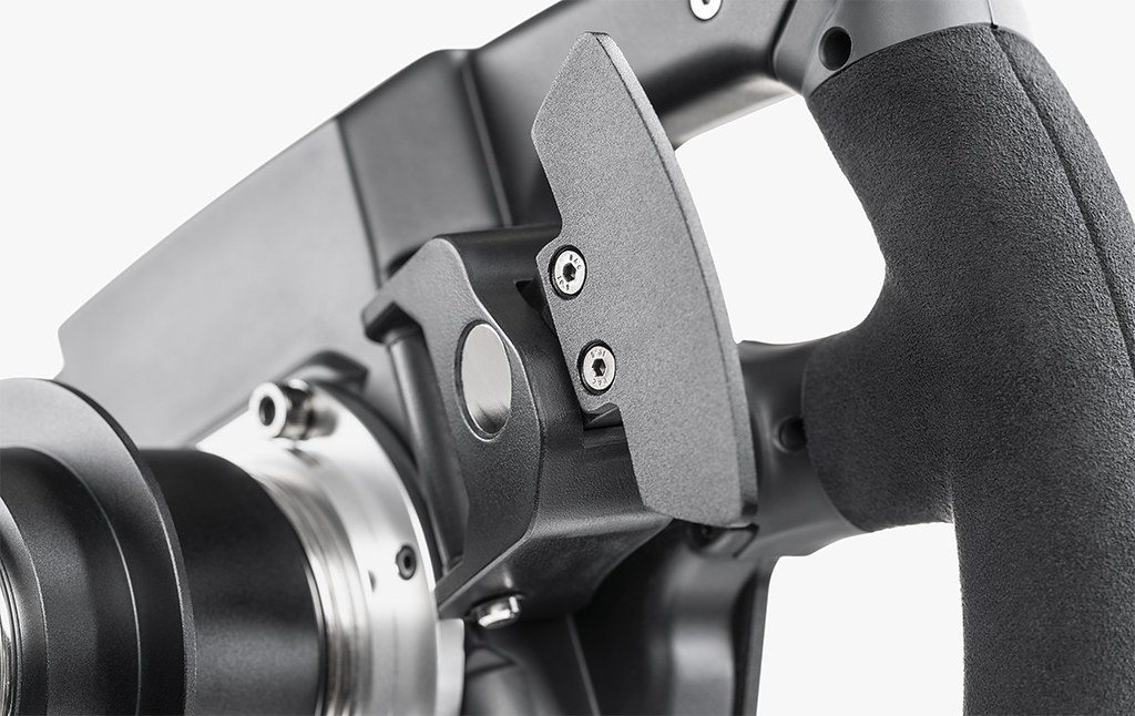 The paddle shifters are easy to reach and provide a satisfying click when engaged. The analog joystick and FunkySwitch are also within easy reach, allowing for quick adjustments during gameplay.